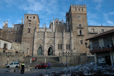 Op weg naar de Extremadura. Het landschap verandert in de karakteristieke dehesa, een open heuvelland met verspreid staande kurkeiken en steeneiken. Je kunt kiezen voor de snelste route naar je volgende overnachtingsplek (1,5 uur) , maar een omweg (totaal 2,5 uur rijden) via het natuurpak van Monfragüe is beslist de moeite waard, zeker voor vogelliefhebbers! Op deze roofvogelrijke heuvelrug zijn enkele wandelingen te maken waarbij je uitstekend zicht hebt op de vale-gierenkolonie van dit natuurpark (7 km, 210 m stijgen en dalen, 2,5 uur). Ook bijzonder zijn de zeldzame zwarte monniksgieren die hier nestelen. Over de weidse steppelanden rijd je vervolgens verder naar het zuiden.Te midden van dit zinderende binnenland van Extremadura ligt een aantal fraaie stadjes, geboorteplaats van veel van Spanje's conquistadores. Je overnacht nabij een van deze stadjes: Trujillo, waar Pizarro vandaan kwam. Hier verblijf je in de Parador die in het 16e eeuwse franciscaner klooster van het stadje gesitueerd is.