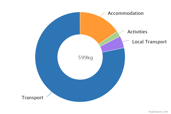 Op reis gaan betekent een onvermijdelijke CO2 voetafdruk. Ook deze reis naar La Palma ontkomt daar niet aan. Hoe groot is mijn voetafdruk? In onderstaand cirkeldiagram kun je zien welke voetafdruk jij achterlaat met je reis.