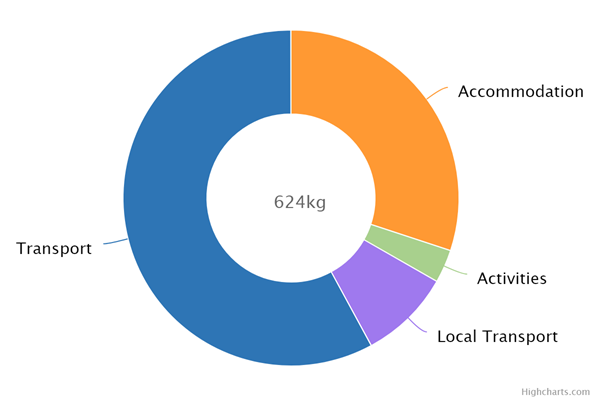 Op reis gaan betekent een onvermijdelijke CO2 voetafdruk. Ook deze reis naar Picos de Europa ontkomt daar niet aan. Hoe groot is mijn voetafdruk? In onderstaand cirkeldiagram kun je zien welke voetafdruk jij achterlaat met je reis.