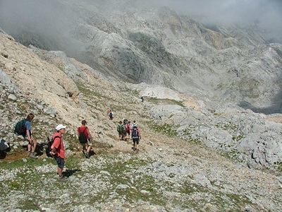 Vandaag wandelen we vanaf de parkeerplaats aan de voet van de pas Pandebano (op 1125 meter) in 6,5 uur op en neer naar een berghut gelegen aan de voet van de Naranjo de Bulnes (13 km, 850 m stijgen en dalen). Met zijn vijfhonderd meter loodrechte wand is dit de indrukwekkendste en markantste piek van het hele gebergte. Vanuit de hut kunnen we ook nog een stuk verder het ruigste deel van de Picos de Europa indringen, bijvoorbeeld naar de dolines van Hous Sin Tierre en de Hou los Boches, prachtige karstbekkens die te midden van indrukwekkende pieken liggen.
