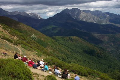 De wandeling van vandaag begint met een stukje rustig inlopen naar het dorp Posada de Valdeon, waar we een kopje koffie kunnen nemen, voordat we aan het zwaardere werk beginnen. Via bergweiden en dichte loofbossen klimmen we naar de rand van het westelijke massief. Een relatief leeg gebied, weg van de veel belopen wandelpaden, waar gemzen, herten, reeën, wolven en een enkele beer leven. De kans dat we beren of wolven tegenkomen is klein, maar wellicht vinden we wel sporen die op hun bestaan wijzen. Grotere kans maken we om reeën en vooral gemzen te zien. Als we obij de zomerhutten van Vega de Llos  aankomen, zien we de twee massieven van de Picos de Europa van nabij, terwijl we ook van indrukwekkende panorama’s over de omliggende berggordels genieten: een overzicht van de landschappen die we de komende dagen zullen doorkruisen. De afdaling wandelen we via het dorpje Soto de Valdeon terug naar Cordiñanes. In Soto kunnen we eventueel een taxi nemen om het laatste stukje van deze pittige dag over te slaan. Lengte 18 of 20 km, 7 of 8 uur wandelen, 810 m stijgen en dalen.