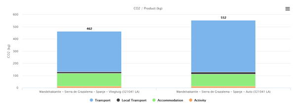 Op reis gaan betekent een onvermijdelijke CO2 voetafdruk. Ook deze reis naar Sierra de Grazalema ontkomt daar niet aan. Hoe groot is mijn voetafdruk? In onderstaand diagram kun je zien welke voetafdruk jij achterlaat met je reis. Je ziet ook het verschil wanneer je per vliegtuig of per auto reist.