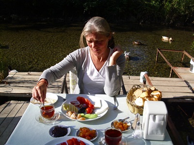 Je krijgt elke dag een voedzaam Turks ontbijt met brood, honing, jam, feta, olijven, komkommer en tomaat. ’s Avonds zet de eigenaar een heerlijke maaltijd van lokale gerechten voor je neus, in het restaurant of buiten op het terras.