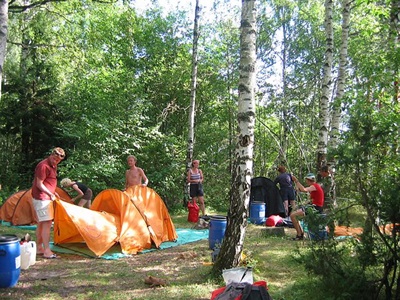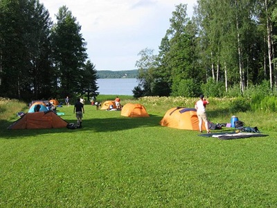 Tijdens de tocht kampeer je langs het water. Je bent vrij zelf een kampeerplek te kiezen om zo de kanotocht naar eigen wens in te delen. Je mag in Scandinavië overal wild kamperen, behalve op privé terrein of dicht bij huizen. Bij het wild kamperen zijn er uiteraard geen voorzieningen. Op een aantal plekken vind je een shelter en/of composttoilet. Heel soms is er een gewone camping, met bijbehorend comfort (ter plekke te betalen). Het zoeken van een overnachtingsplek is deel van de lol. Je moet er op tijd mee beginnen, omdat je echt niet zomaar overal kan staan. De oever kan te steil zijn, of te dicht begroeid, of er staat een huisje, of het plekje is al ingepikt door een ander kano-gezelschap.
