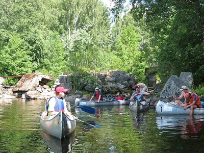 In Zweden is het haast onmogelijk om een langere kanotocht te maken zonder af en toe aan land te moeten. De hoogteverschillen tussen de meren worden namelijk gebruikt voor waterkrachtcentrales, waardoor je af en toe om een stuwdam heen moet wandelen. De plekken waar je aan land moet gaan worden aangegeven op de kaart en langs het water met vrij kleine bordjes.