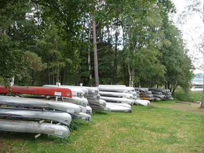 Je vaart in open, tweepersoons, aluminium Canadese kano’s. Ze zijn onzinkbaar en behoorlijk koersvast, hetgeen van belang is wanneer je een meer oversteekt. Er is voldoende ruimte in de boten om alle bagage te vervoeren. Je krijgt een waterdichte ton mee van ca. 60 liter.