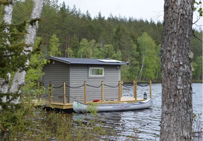 In Ostergötland verblijf je in een zeer landelijk gelegen familiehotel in een oude pastorie. Dit hotel verzorgt een bijzondere overnachting in een 'drijvende hotelkamer' op je eigen privé-meer, verstopt in het bos. Deze plek is zo afgelegen dat er zelden iemand anders komt. Het kleine huisje op het vlot herbergt een tweepersoonsbed, tafel en stoelen, wc en terrasje. Zonnepanelen verzorgen de verlichting en je kan je telefoon opladen. Naast het vlot ligt een kano om het meer te verkennen. Je bagage en het eten wordt naar het huisje gebracht, terwijl je er zelf heen wandelt. Het eten staat in een koelkastje en warm je 's avonds zelf op. Alles wat je niet nodig hebt voor de overnachting op het meer, kan in de hotelkamer blijven liggen.