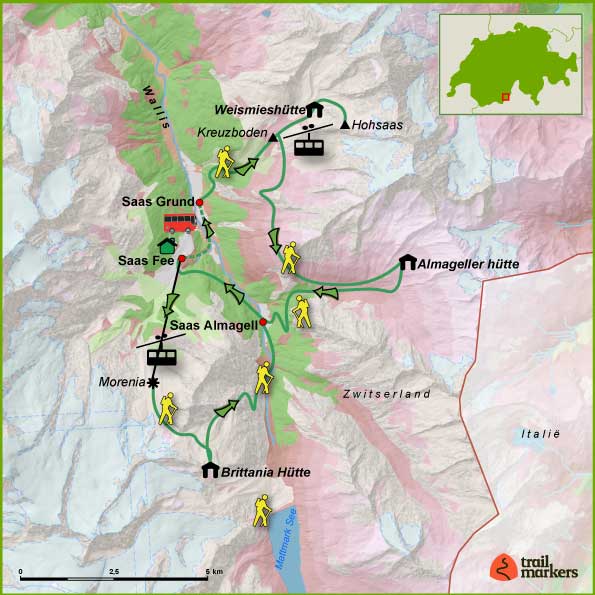 - Dagelijkse transfers tussen accommodaties en start/finish