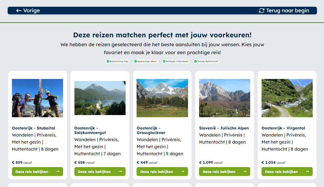 Zet stappen door kleurige wijngaarden, geurige heuvellandschappen of bruisende steden. Via SNP Natuurreizen boek je een wandelreis die perfect bij je past. Ontdek unieke plekken, die je met een fiets, auto of trein nooit zou vinden. En reis de hele wereld over: van de heuvels in Zuid-Limburg tot de gletsjers in Noorwegen en de hoge bergen in Patagonië. Onderweg overnacht je in een comfortabel hotel of een knusse trekkershut. Kies voor de perfecte wandelreis, precies zoals jij ‘m wilt. Bekijk al onze wandelreizen in Europa!